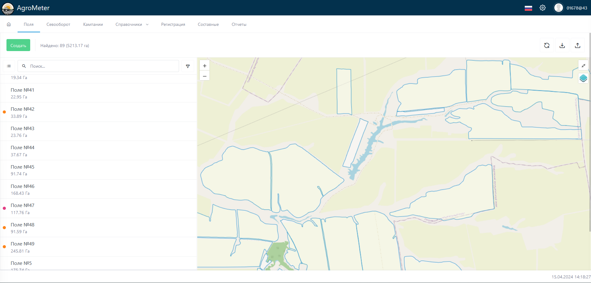 Поля являются одним из ключевых элементов в Агрометр. Для работы с ними выберите одноименный пункт в навигационной панели.